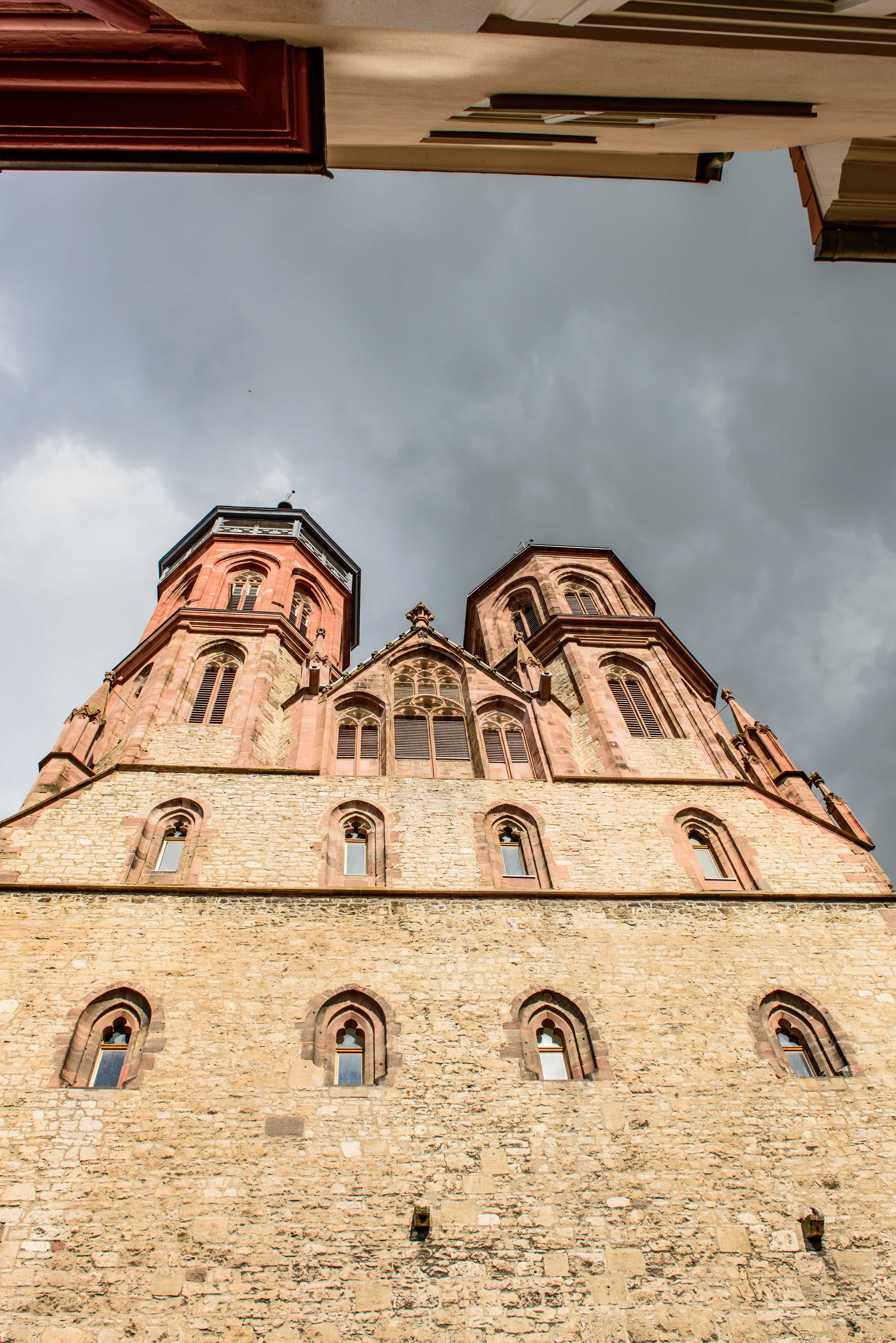 Nord- und Südturm sind achteckige Doppeltürme. Dieses architektonische Merkmal wiederholt sich in den Säulen der Kirche. Der Unterbau ist aus romanischer Zeit. Anfang des 14. Jh. wurden auf den Westriegel der Kirche Türme und Glockenhaus aufgesetzt.